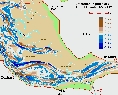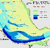 Für das Untersuchungsgebiet 6 (UG 6) wurden Peilungen der Jahre 1995 und 1997 ausgewertet. Die Topographie des Jahres 1997 zeigt Abbildung III.2.6-1. Diese Topographie berücksichtigt die Daten der Jahreshauptpeilung ´97 sowie die Daten der MThw-Linie aus der DBWK2 (Digitale Bundeswasserstraßenkarte).