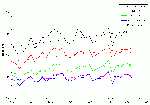 Abb. I-6: Jährliches mittleres Tideniedrigwasser an den Pegeln Cuxhaven, Brunsbüttel, Stadersand, St. Pauli und Zollenspieker seit 1970