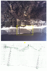 Die Erfassung des Ist-Zustands der gesamten terrestrischen Ufertopographie der Hamburger Delegationsstrecke erfolgte im Rahmen der Beweissicherung mit Hilfe eines Bildfluges. Dieser ermöglichte eine Auswertegenauigkeit in Lage und Höhe von ± 10 cm und besser. Auf Grundlage der Höhenauswertung des Bildfluges wurde ein digitales Geländemodell entwickelt, das die gesamte Geländestruktur in einem sehr dichten, flächendeckenden 10 m-Raster wiedergibt. Darüber hinaus wurden linienhafte Strukturen wie z.B. Abbruchkanten bezüglich Höhe und Lage gesondert erfasst.