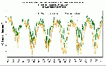 In Abb. III.5-3 sind die täglichen Sauerstoffminima der beiden kontinuierlichen Messstationen Bunthaus und Seemannshöft im Zeitraum 1996 bis 2001 dargestellt. Die Daten veranschaulichen die starke Belastung des Sauerstoffhaushaltes in diesem Bereich der Tideelbe. So fallen oberhalb des Hamburger Hafens bei Bunthaus im Sommer die Tagesminima des Sauerstoffgehalts bis auf 2 mg/l (Juni 2000 und Juli 2001) ab. Noch geringere Gehalte waren bei Seemannshöft mit deutlichen Unterschreitungen des 2 mg/l-Wertes in den Sommermonaten der Jahre 1997 und 1999-2001 zu registrieren. Die langen Aufenthaltszeiten des Wassers und die ungünstigen Bedingungen (große Wassertiefen mit gering durchlichtetem Anteil) für den biogenen Sauerstoffeintrag durch Algen und die physikalische Wiederbelüftung begünstigen die sauerstoffzehrenden Prozesse und führen so zum Rückgang der Sauerstoffgehalte in diesem Bereich. Insbesondere die O²-Tagesminima an der Station Bunthaus zeigen von 1996 bis 2001 eine Tendenz zu immer niedrigeren Sauerstoffgehalten. Hierdurch wird eine zunehmende Belastung des Sauerstoffhaushaltes der Unterelbe angezeigt. Diese Tendenz schlägt sich auch in den geringen Sauerstoffgehalten der Sommermonate 1999 bis 2001 an der Station Seemannshöft nieder. Die kontinuierlichen Messungen an der Station Grauerort (Elbe-km 660,5) wiesen in den Jahren 1996 bis 2000 keine eindeutige Tendenz auf. Die Sauerstoffminima lagen immer über 4 mg O²/l.